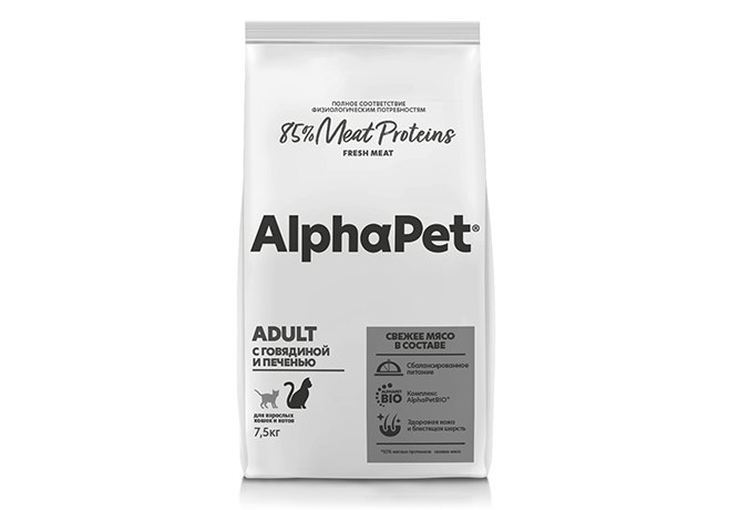 AlphaPet Superpremium Сухой корм АльфаПет для взрослых кошек Говядина печень 7,5 кг