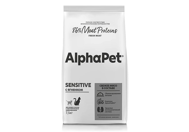 AlphaPet Superpremium Sensitive Сухой корм АльфаПет для взрослых кошек с Чувствительным пищеварением Ягненок 7,5 кг