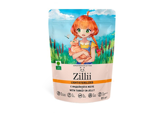 Zillii Sterilized & Light Turkey in jelly Паучи Зилли для взрослых Стерилизованных кошек Индейка в желе (цена за упаковку) 85г х 12шт