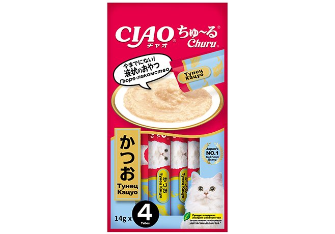 Inaba Ciao Churu Katsuo Tuna Лакомство-пюре Инаба для кошек Тунец кацуо 14г х 4шт