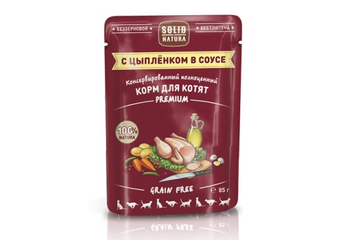 Solid Natura Premium Паучи Солид Натура Беззерновые для Котят Кусочки в соусе с Цыпленком (цена за упаковку) 85г х 14шт