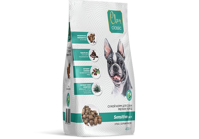 Clan Classic Sensitive 24-11 Сухой корм Клан для собак Мелких пород Утка с Бурым рисом 400 г