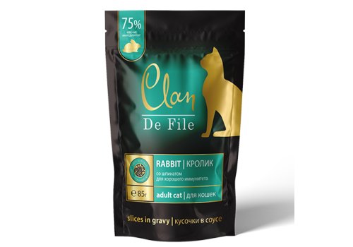 Clan De File Паучи Клан для взрослых кошек Кусочки в соусе Кролик со шпинатом (цена за упаковку) 85г х 14шт