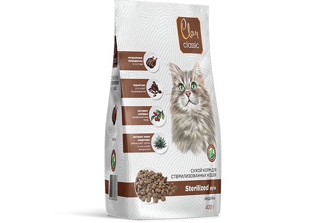 Clan Classic Sterilized 30-14 Сухой корм Клан для Стерилизованных кошек Индейка 400 г