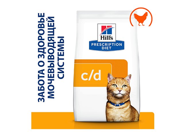 Сухой диетический корм для кошек Hill's Prescription Diet c/d Multicare - это полноценный диетический рацион для поддержания здоровья мочевыделительной системы у кошек. Клинически доказано: уменьшает вероятность повторного проявления признаков болезни мочевыводящих путей на 89%. Сухой корм с восхитительным вкусом курицы при профилактике мочекаменной болезни (мкб), который понравится вашей кошке.