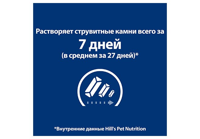 ● Способствует растворению струвитных уролитов всего за 7 дней (в среднем 27 дней)