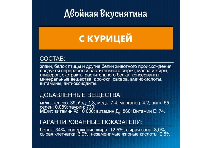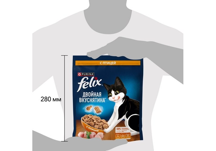 Любопытство Вашего кота заложено природой! И бренд Felix® снова придумал, как его удовлетворить. Представляем Felix® Двойная Вкуснятина® – сухой корм для кошек, который полностью соответствует потребностям Вашего озорника. Восхитительное сочетание двух текстур в одной упаковке: хрустящие гранулы смешаны с мягкими кусочками для создания невероятного вкуса, перед которым невозможно устоять! Широкий ассортимент позволит коту наслаждаться разнообразием мясных или рыбных вкусов с соблазнительными ароматами.