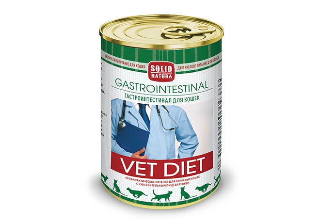 Solid Natura Vet Diet Gastrointestinal Ветеринарный влажный корм (консервы) Солид Натура для кошек при Чувствительном пищеварении (цена за упаковку) 340г х 12шт