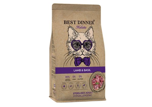 Best Dinner Holistic Sterilised Adult Cat Hypoallergenic Lamb & Basil Сухой корм Бест Диннер для Стерилизованных кошек Гипоаллергенный Ягненок базилик 10 кг