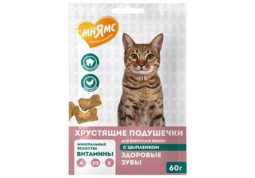 Мнямс Лакомство для кошек Хрустящие подушечки Здоровые зубы с Цыпленком 60 г