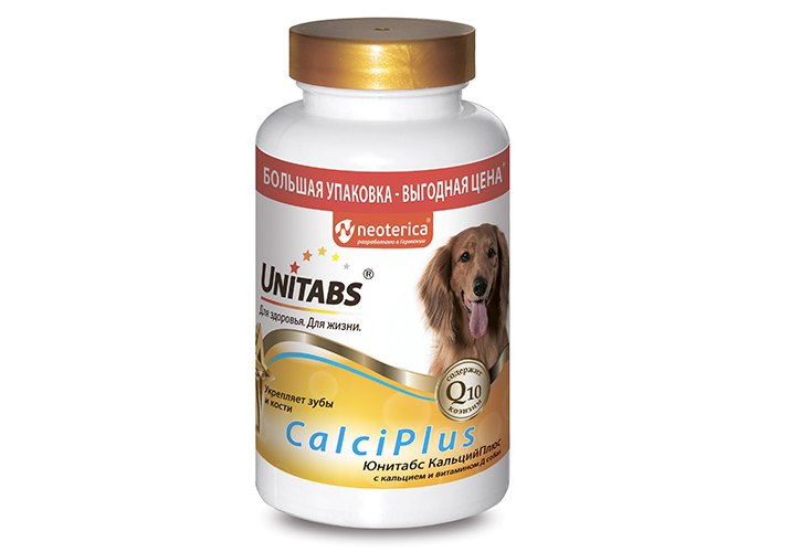 Unitabs CalciPlus с Q10 Витаминно-минеральный комплекс Юнитабс для собак Кальций, Фосфор, витамин Д 200 таб