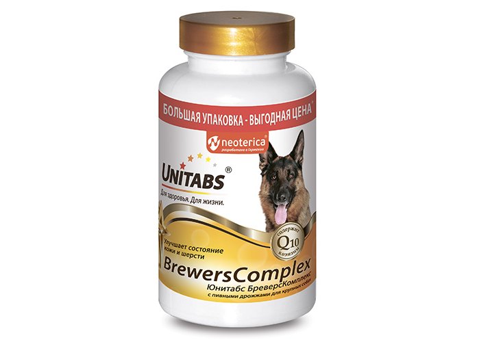 Unitabs BrewersComplex с Q10 Витаминно-минеральный комплекс Юнитабс для Крупных собак с Пивными дрожжами 200 таб