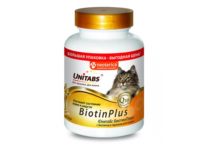 Unitabs BiotinPlus с Q10 Витаминно-минеральный комплекс Юнитабс для кошек с Биотином и Таурином 200 таб
