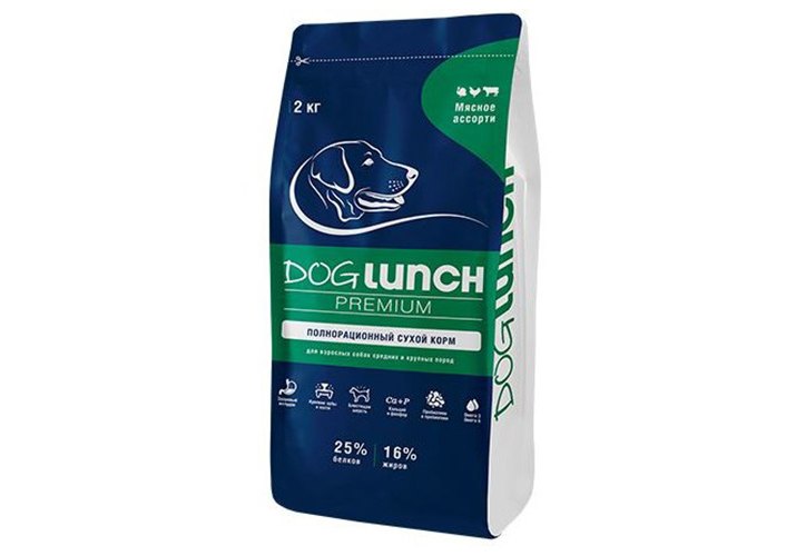 Dog Lunch Premium Сухой корм ДогЛанч для собак Средних и Крупных пород Мясное ассорти 2 кг