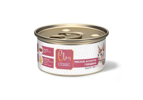 Clan Classic Консервы Клан для кошек Мясное ассорти с Говядиной (цена за упаковку) 100г х 12шт