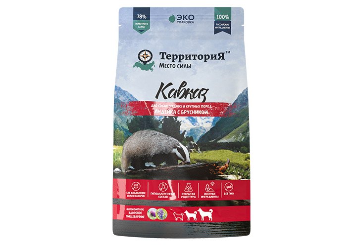 Территория Кавказ Сухой корм для собак Средних и Крупных пород Индейка с брусникой 2,5 кг
