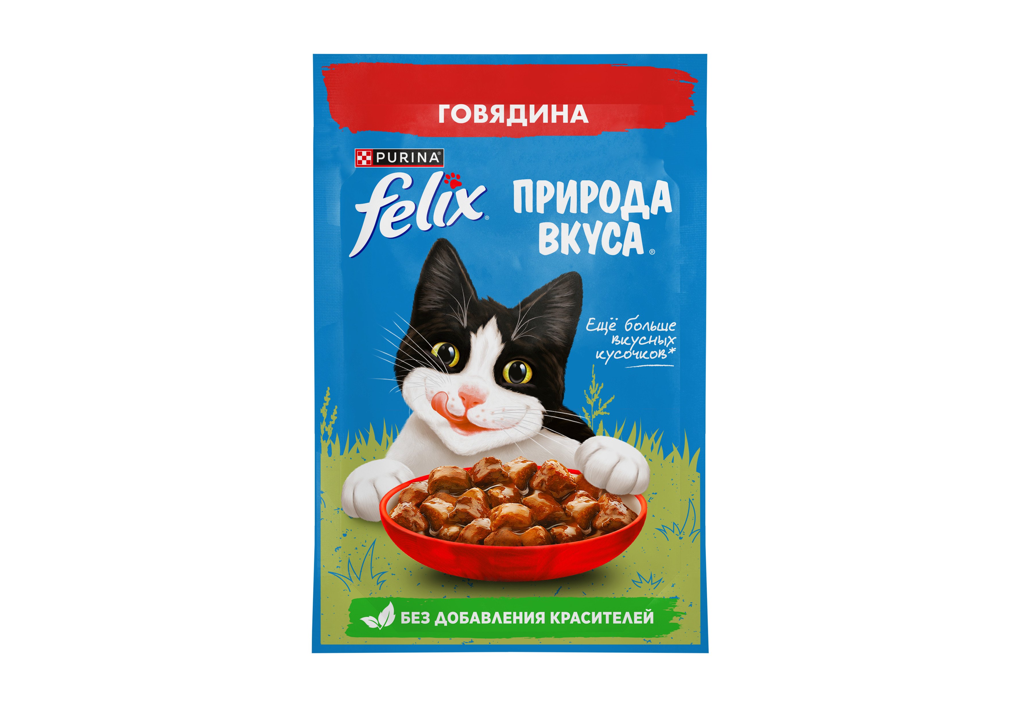 FELIX ПРИРОДА ВКУСА Влажный корм Паучи Пурина Феликс Природа вкуса для взрослых кошек с говядиной (цена за упаковку) 75г х 26шт