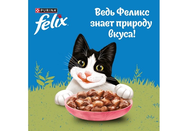 Все знают, что FELIX означает «умный», как кот Феликс! Если вы хотите удовлетворить потребности своих любимых озорных проказников, откройте для себя соблазнительный ассортимент корма FELIX. FELIX — это вкуснейший корм, который выглядит так, как будто вы приготовили его сами, а также сенсационное сочетание превосходного внешнего вида, консистенции и отменных вкусовых качеств, удовлетворяющих пищевые предпочтения любой, даже самой привередливой кошки. И это неудивительно — ведь в ассортимент кормов FELIX входят ароматные желе, соусы и даже хрустящие гранулы — вот почему находчивые коты предпочитают именно FELIX!