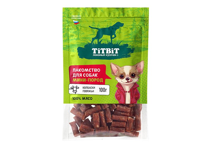 Titbit Лакомый кусочек Лакомство Титбит для собак Мини пород Колбаски Говяжьи 100 г