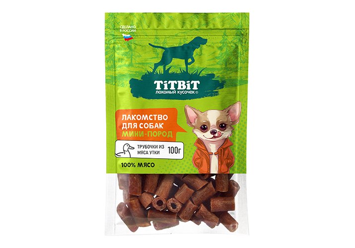 Titbit Лакомый кусочек Лакомство Титбит для собак Мини пород Трубочки из мяса Утки 100 г