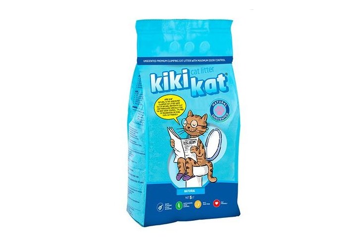 KikiKat Natural Unscented Комкующийся наполнитель Кикикэт для кошачьего туалета Бентонитовый супер-белый Без аромата 5 л