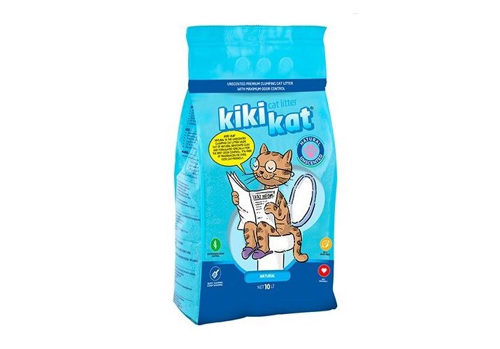 KikiKat Natural Unscented Комкующийся наполнитель Кикикэт для кошачьего туалета Бентонитовый супер-белый Без аромата 10 л