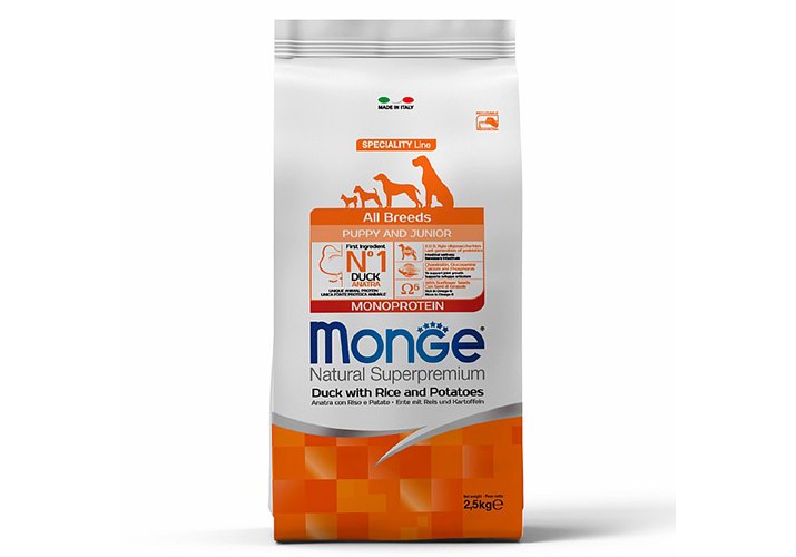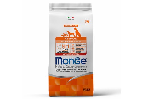 Monge Puppy and Junior Speciality Line Monoprotein All Breeds Duck rice potatoes Сухой корм Монж для Щенков всех пород Утка с рисом и картофелем 2,5 кг