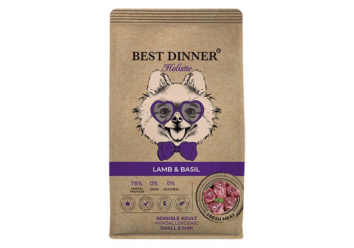 Best Dinner Holistic Sensible Adult Hypoallergenic Small & Mini Lamb & Basil Сухой корм Бест Диннер для взрослых собак Мелких пород Ягненок базилик 10 кг