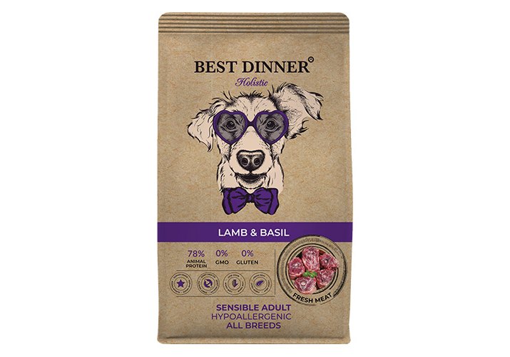 Best Dinner Holistic Sensible Adult Hypoallergenic All Breeds Lamb & Basil Сухой корм Бест Диннер для взрослых собак всех пород Ягненок базилик 12 кг