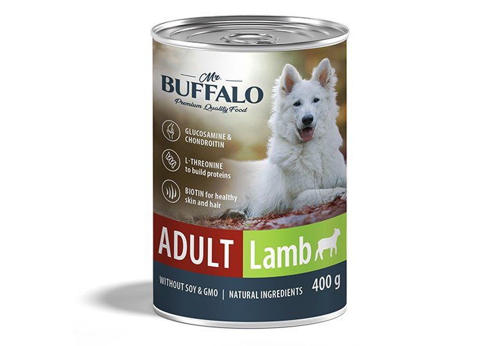 Mr.Buffalo Adult Lamb Консервы Мистер Бафало для взрослых собак Ягненок (цена за упаковку) 400г х 12шт