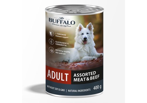 Mr.Buffalo Adult Assorted Meat & Beef Консервы Мистер Бафало для взрослых собак Мясное ассорти и говядина (цена за упаковку) 400г х 9шт