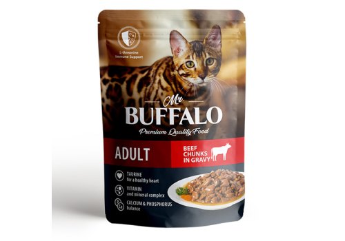 Mr.Buffalo Adult Beef Паучи Мистер Бафало для взрослых кошек Говядина в соусе (цена за упаковку) 85г х 28шт