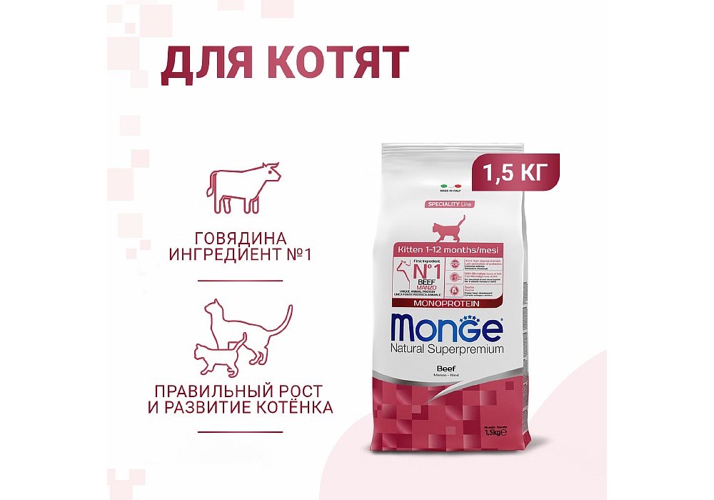 Monge Kitten Speciality Line Monoprotein Beef Сухой корм Монж Монопротеиновый для Котят Говядина 1,5 кг
