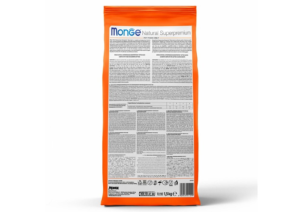 Сбалансированный полнорационный корм, который разработан на основе одного источника белка животного происхождения – утка, для котят с 1 до 12 месяцев. Идеально подходит для питомцев, которые обладают повышенной чувствительностью к компонентам корма или нуждаются в исключающей диете. Пребиотики М.О.S и X.O.S. помогают сохранять естественный баланс кишечной микрофлоры и способствует оптимальному усвоению питательных веществ. Масло микроводорослей - источника ДГК для поддержания работы нервной и зрительной системы. Таурин – незаменимая аминокислота для поддержания работы сердечно - сосудистой системы, печени, почек и мозга. Без ГМО, искусственных красителей и ароматизаторов.