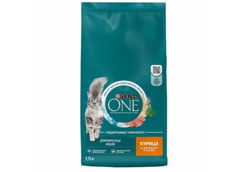 Корм Purina ONE® с курицей для взрослых кошек в выгодной* упаковке 9,75 кг — это:
