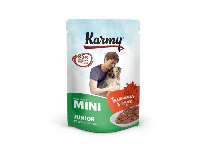 Karmy Junior Mini Паучи Карми для Щенков Мелких пород Телятина в соусе (цена за упаковку) 80г х 12шт