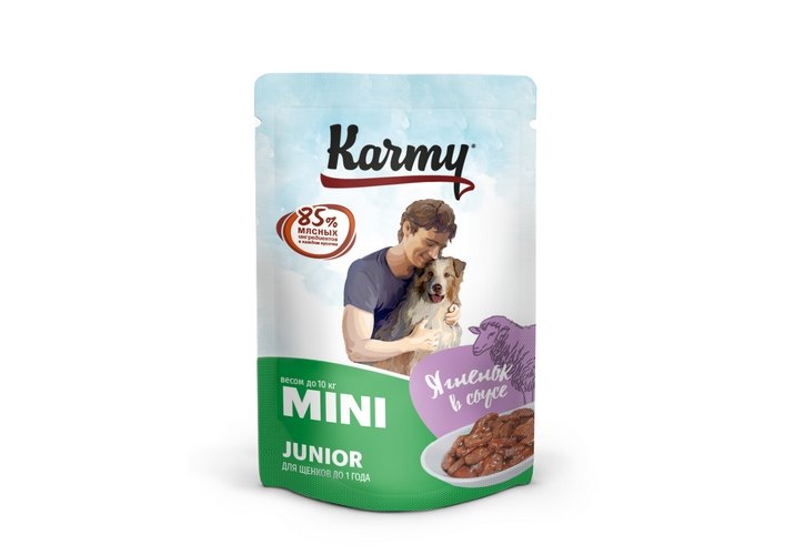 Karmy Junior Mini Паучи Карми для Щенков Мелких пород Ягненок в соусе (цена за упаковку) 80г х 12шт