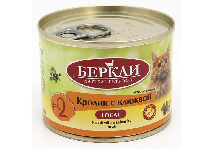 Berkley LOCAL Террин №2 Влажный корм Консервы Беркли для кошек Кролик с клюквой (цена за упаковку) 200г х 6шт