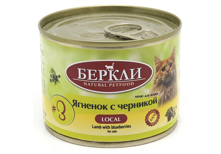 Berkley LOCAL Террин №3 Влажный корм Консервы Беркли для кошек Ягненок с черникой (цена за упаковку) 200г х 6шт