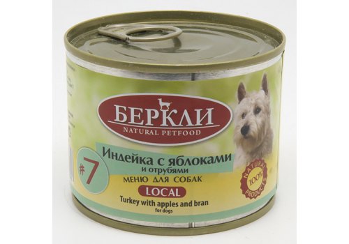 Berkley LOCAL Террин №7 Влажный корм Консервы Беркли для собак Индейка с яблоками и отрубями (цена за упаковку) 200г х 6шт