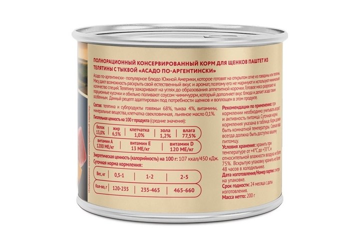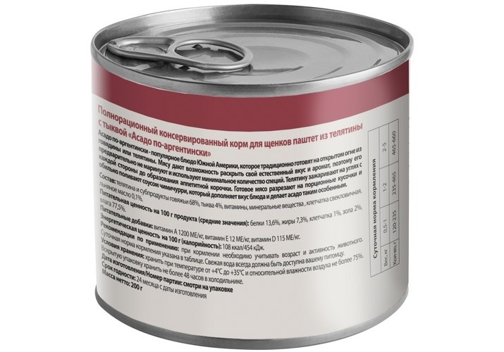 Полнорационный консервированный корм для щенков "Асадо по-аргентински".