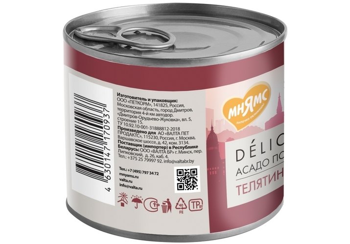 Мнямс Влажный корм Консервы для Щенков всех пород Асадо по-аргентински Телятина с тыквой (цена за упаковку) 200г х 12шт