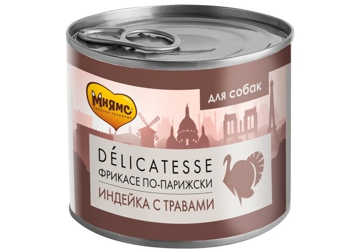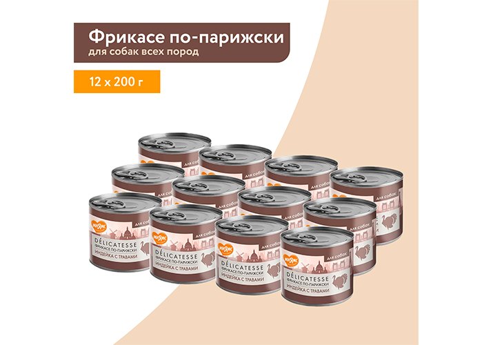 Мнямс Влажный корм Консервы для собак всех пород Фрикасе по-парижски Индейка с травами (цена за упаковку) 200г х 12шт