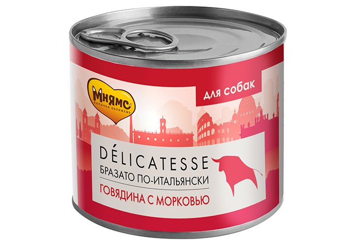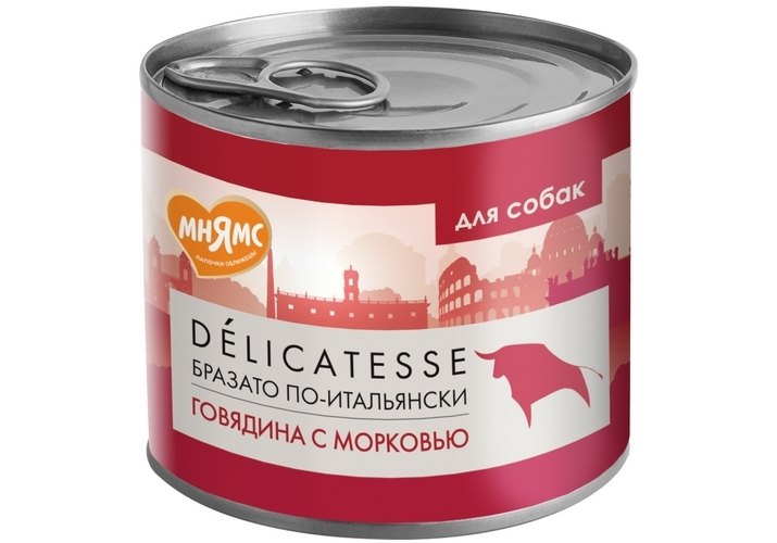Мнямс Влажный корм Консервы для собак всех пород Бразато по-итальянски Говядина с морковью (цена за упаковку) 200г х 12шт