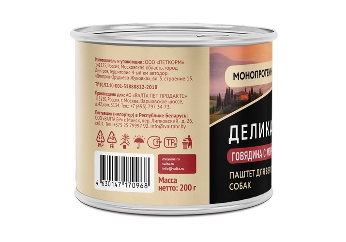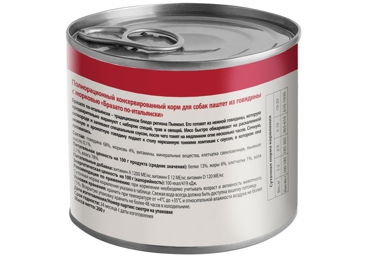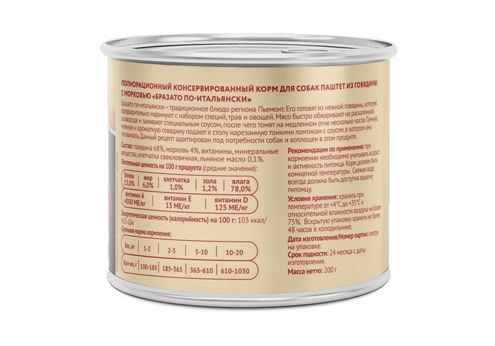 Полнорационный консервированный корм для собак "Бразато по-итальянски".