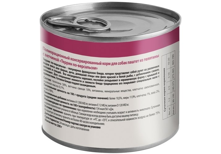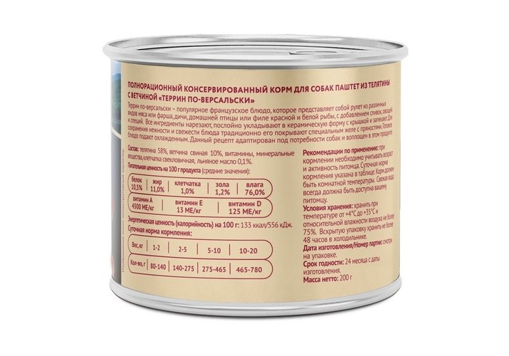 Полнорационный консервированный корм для собак "Террин по-версальски".