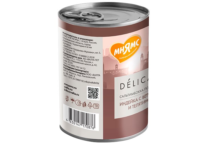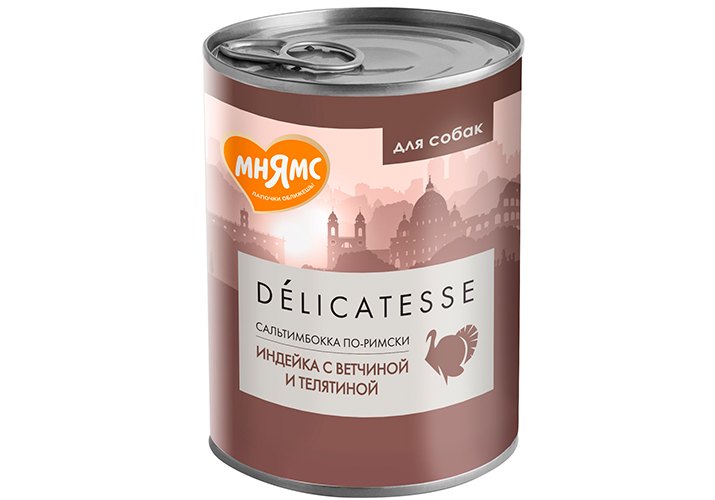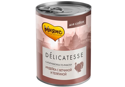 Мнямс Влажный корм Консервы для собак всех пород Сальтимбокка по-римски Индейка с ветчиной и телятиной (цена за упаковку) 400г х 12шт