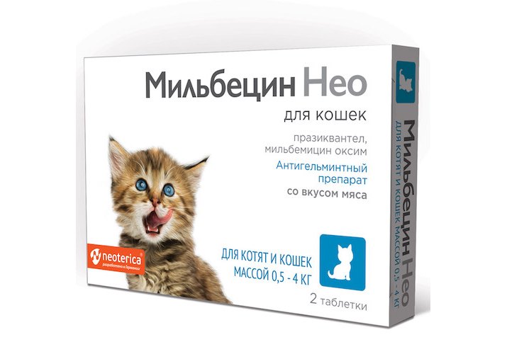 Мильбецин Нео антигельминтик для котят и кошек весом 0,5 - 4 кг 1 х 2 шт