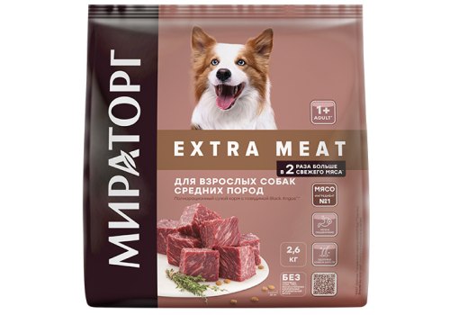 Мираторг Extra Meat Сухой корм для взрослых собак Средних пород старше 1 года с Говядиной Black Angus 2,6 кг