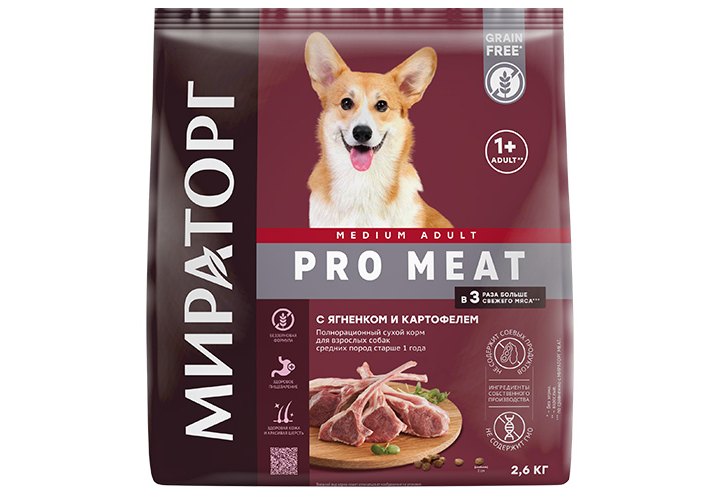 Мираторг Pro Meat Сухой корм для взрослых собак Cредних пород старше 1 года с Ягненком и картофелем 2,6 кг